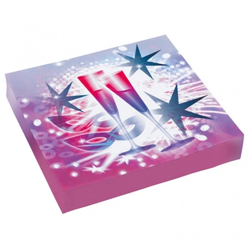 Pezsgőspoharas Happy New Year szalvéta 33 x 33 cm 20 db/cs. Minden fergeteges szilveszteri party elengedhetetlen kelléke a szalvéta. Egészítsd ki hozzá illő pohárral és tányérral és dobd fel a hangulatot!