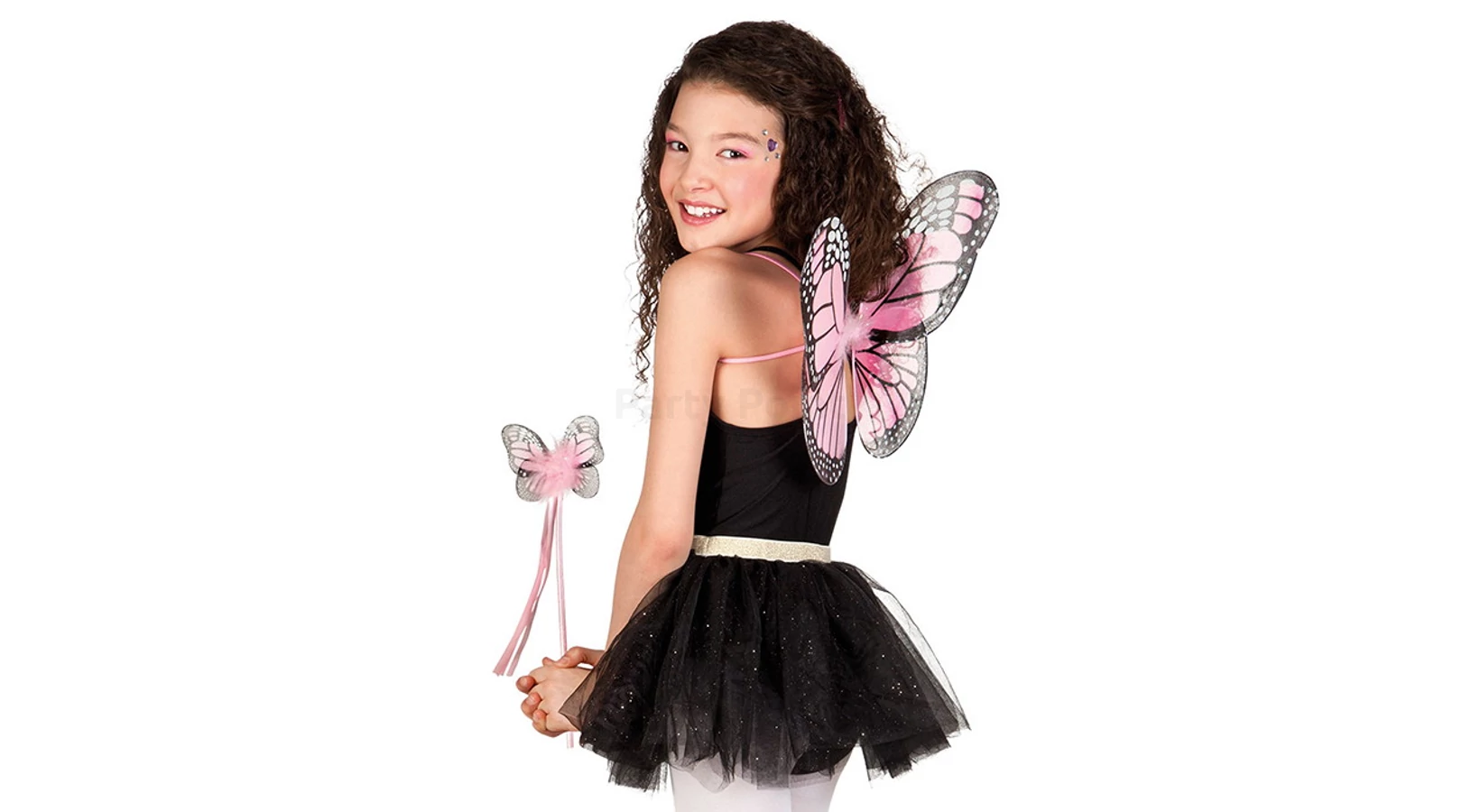 Farsangra, szilveszterre, beöltözős partira ajánljuk ezt a két részes pillangó szettet. A szett tartalma: rózsaszínű és fekete pillangó szárny, hozzáillő varázspálcával. A szárnyak átlátszó elasztikus pánttal rögzíthetők.