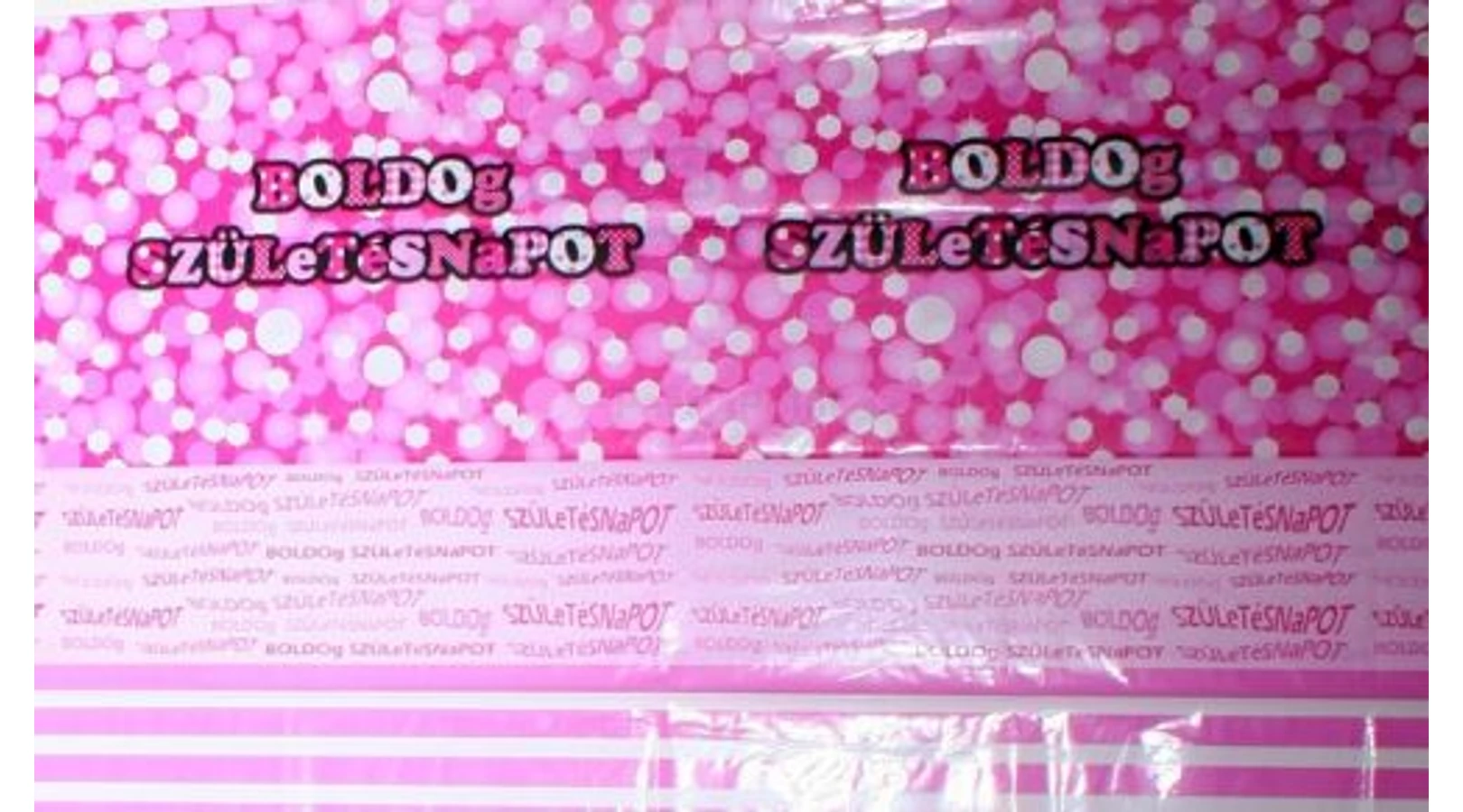 Egy hangulatos szülinap elengedhetetlen kelléke az ünnepi teríték. Dekoráld az asztalt ezzel a Boldog születésnapot feliratos pink színű terítővel, amit kiegészíthetsz a hozzá illő tányér, pohár, szalvéta együttesével is. A terítő anyaga: műanyag, mérete: 130x180 cm.