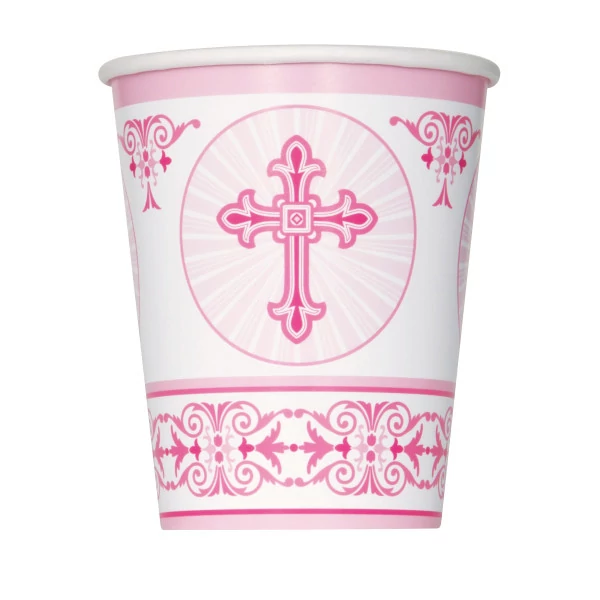 A babakeresztelő egy különleges esemény, így az alkalomhoz illő dekoráció és teríték sem maradhat el. Kislányok keresztelőjéhez válaszd ezt a fehér-rózsaszín poharat, amit kombinálhatsz a hozzáillő tányérral, szalvétával és egyéb kellékekkel. A csomag tartalma: 8db papírpohár.