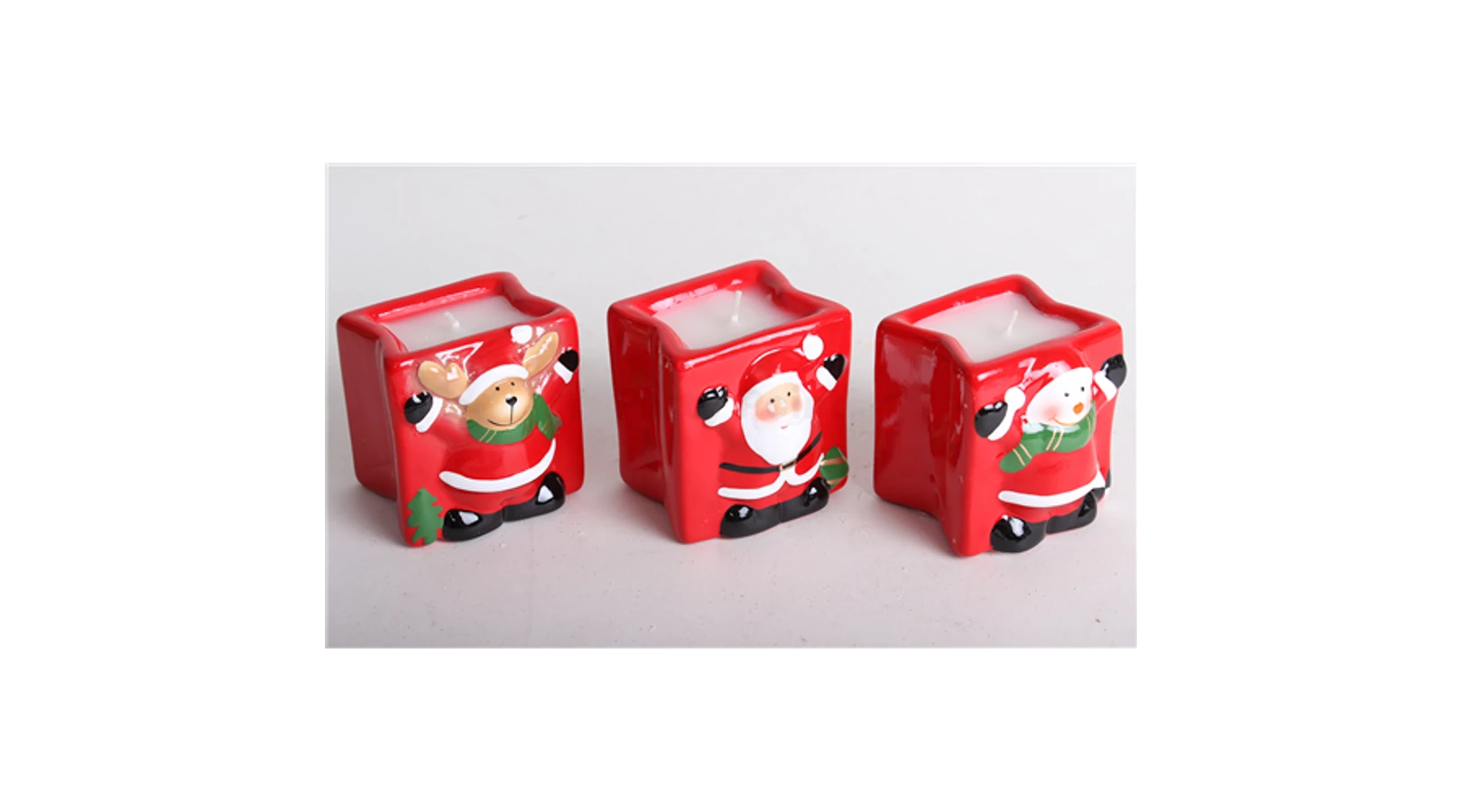 Porcelán gyertyatartó Hóember,Mikulás, Szarvas 3db/cs
