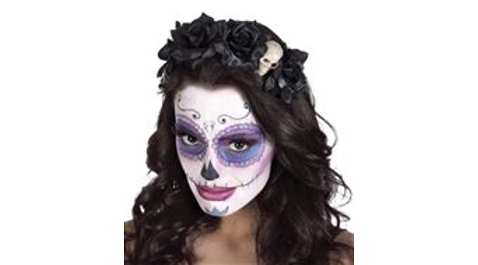 Ez a Halál napja (Day of the Dead) fekete rózsákkal és koponyával díszített hajpánt számos halloweeni vagy farsangi jelmez szuper kiegészítője lehet.