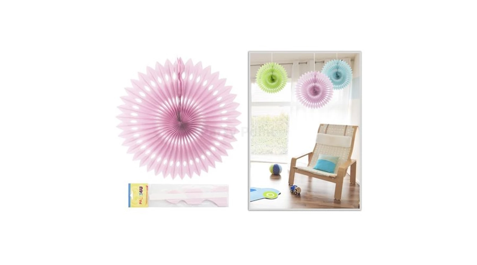 Farsangi, szilveszteri vagy babaváró bulik, kerti partik, céges rendezvények színes dekorációja lehet ez a rózsaszín legyező papír dísz, amit kiegészíthetsz hozzá illő girlandokkal, lampionokkal, szerpentinekkel is. Mérete: kb. 40 cm.