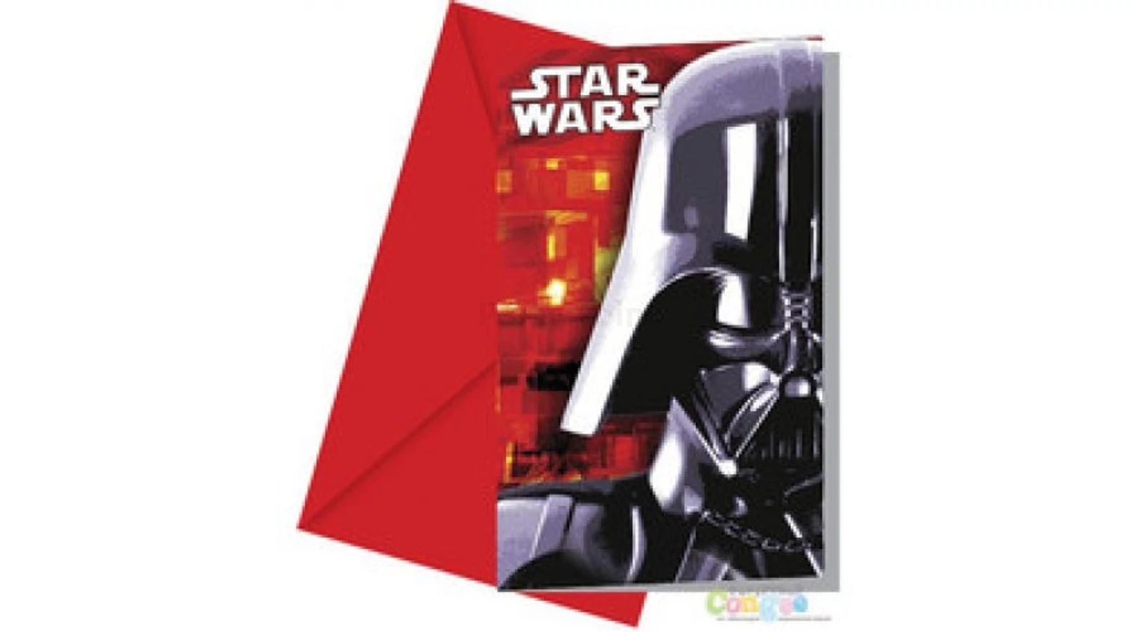 Rendezz Star Wars bulit és küldj egy ilyen meghívót a barátaidnak. Star Wars meghívó, 6 db/csomag. A meghívó mellé válassz Star Wars tányért, szalvétát és poharat, valamint egyéb Star Wars kiegészítőket.