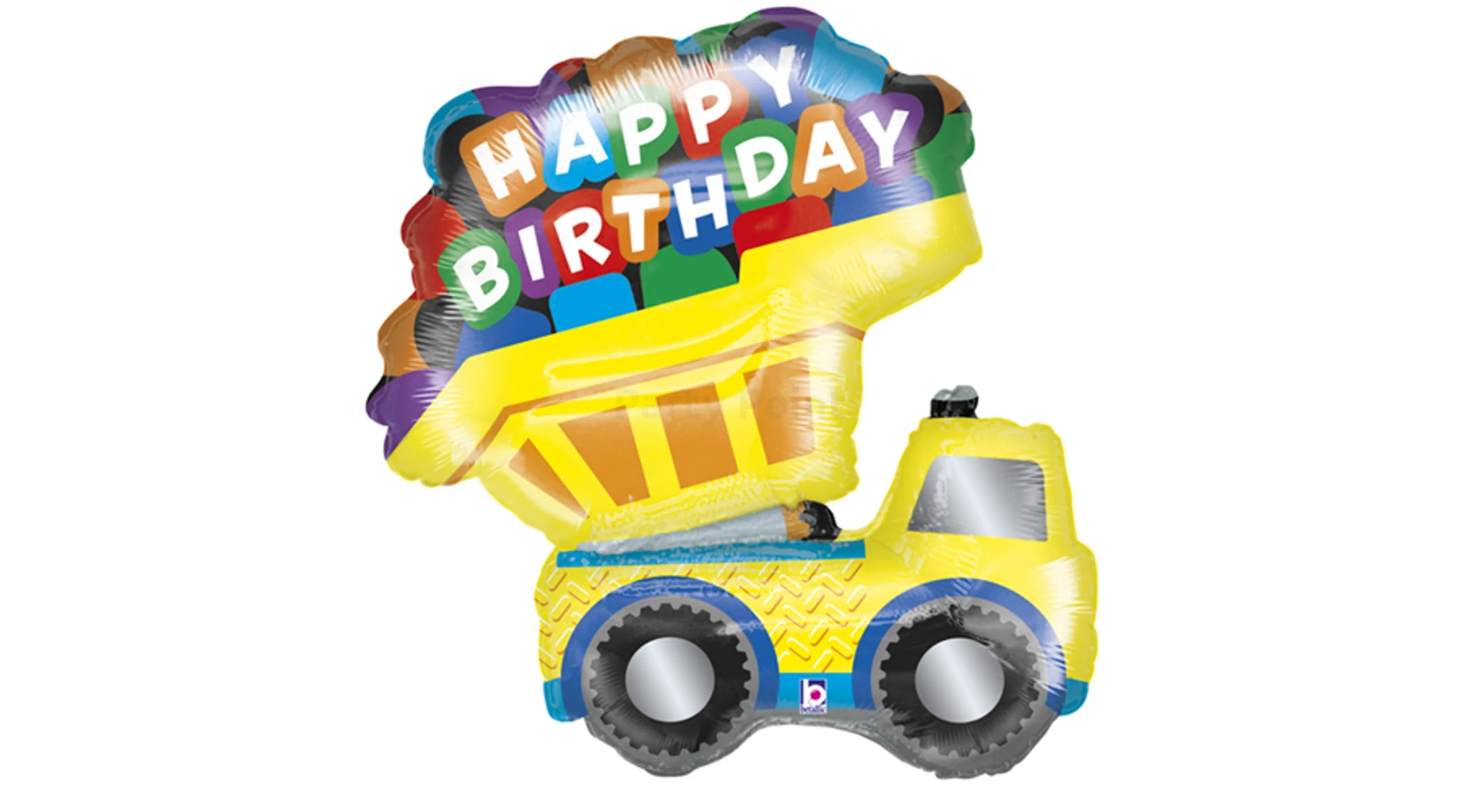Happy Birth day teherautós fólia lufi ,Önzáró szeleppel rendelkezik, felfújható héliummal és levegővel egyaránt.Csomagolt.Mérete: 84cm-es
