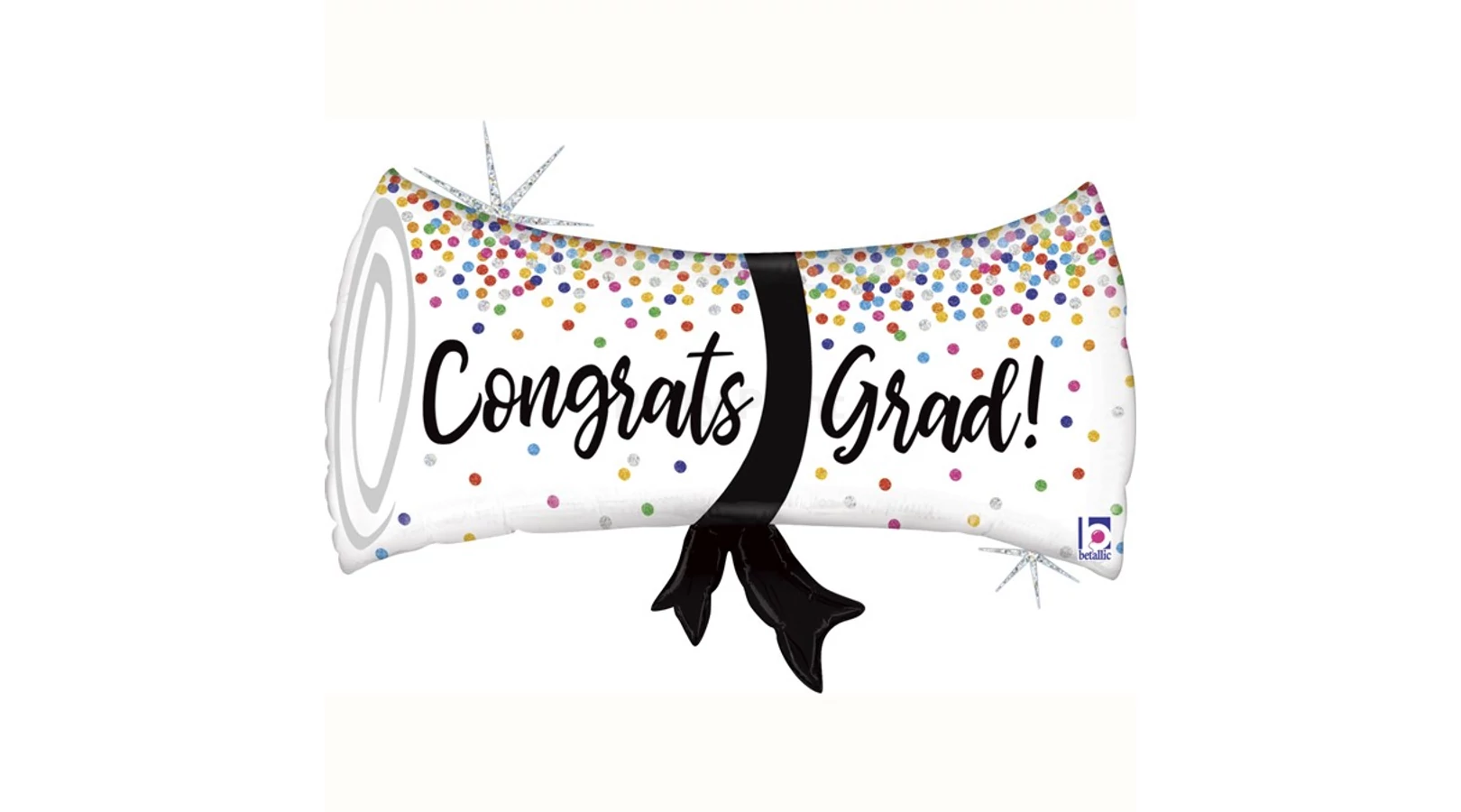 Ballagásra, diplomaosztóra szuper ajándék ez a színes konfettis, Congrats Grad feliratos fólia lufi. Levegővel és héliummal is fújható.