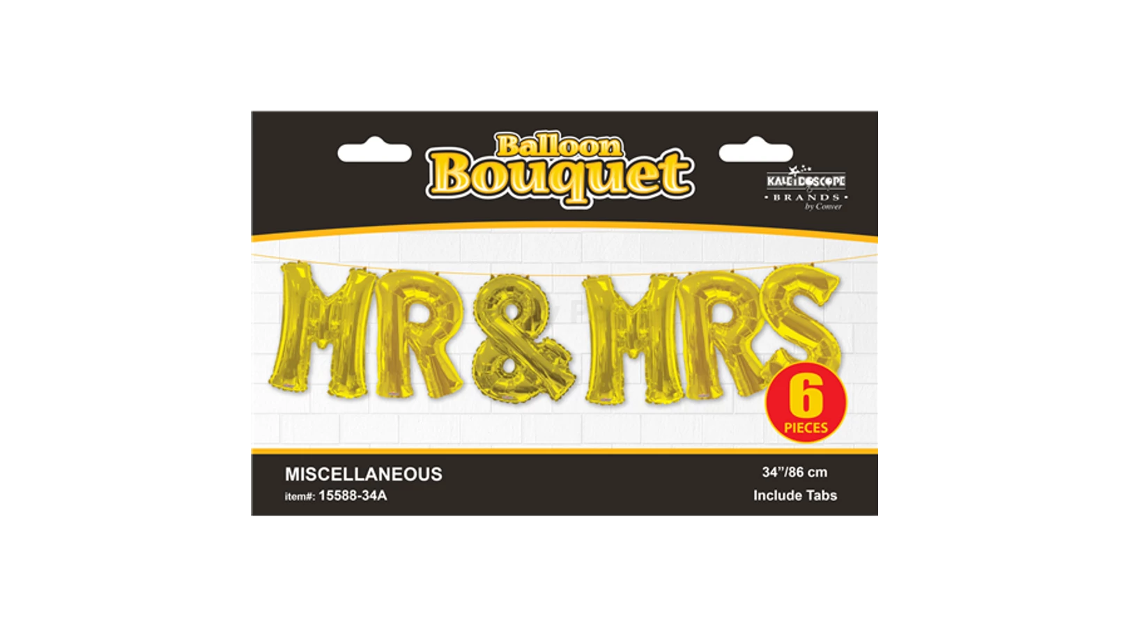 SuperShape - Mr & Mrs felirat arany színű betű fólia lufi csomag