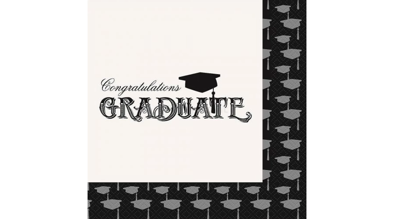 Ballagási terítékhez remekül passzol ez az alkalomhoz illő szalvéta, "Congratulations Graduate" felirattal. Egészítsd ki a dekorációt hozzá való tányér és pohár szettel, hogy teljes legyen az összhang.