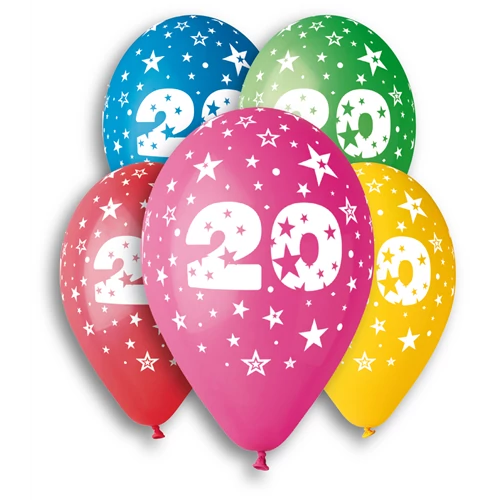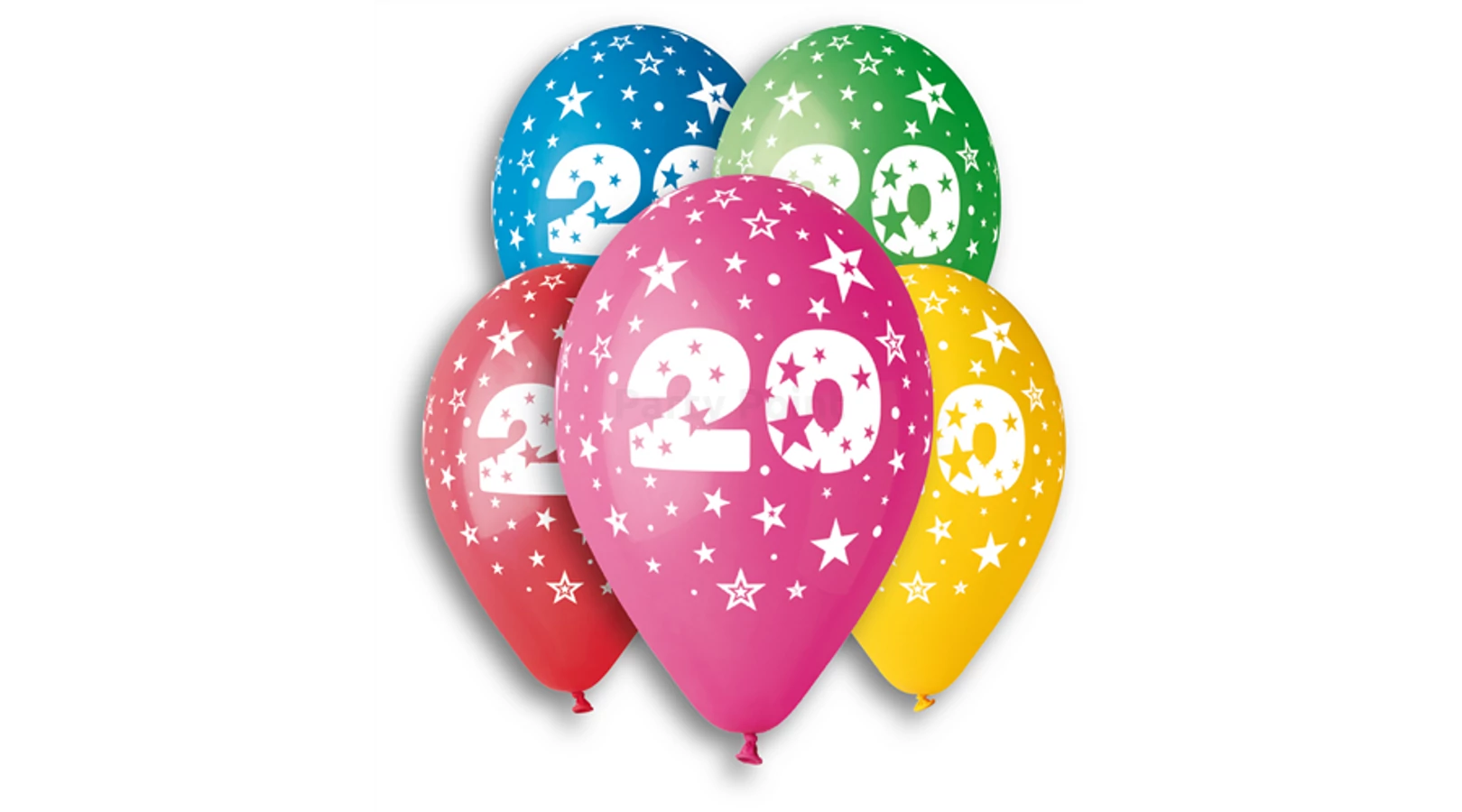 Számos gumi lufi 20, 5 db/cs. A 20. születésnap igazán különleges alkalom! Dobd fel a party dekorációt ezzel a vidám, színes gumi lufival. Kiegészítésként választhatsz mellé számozott zászlókat vagy alkalomhoz illő feliratot. Héliummal és levegővel is tölthető.