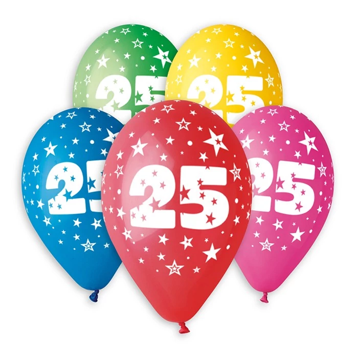 Számos gumi léggömb 25. szülinapra