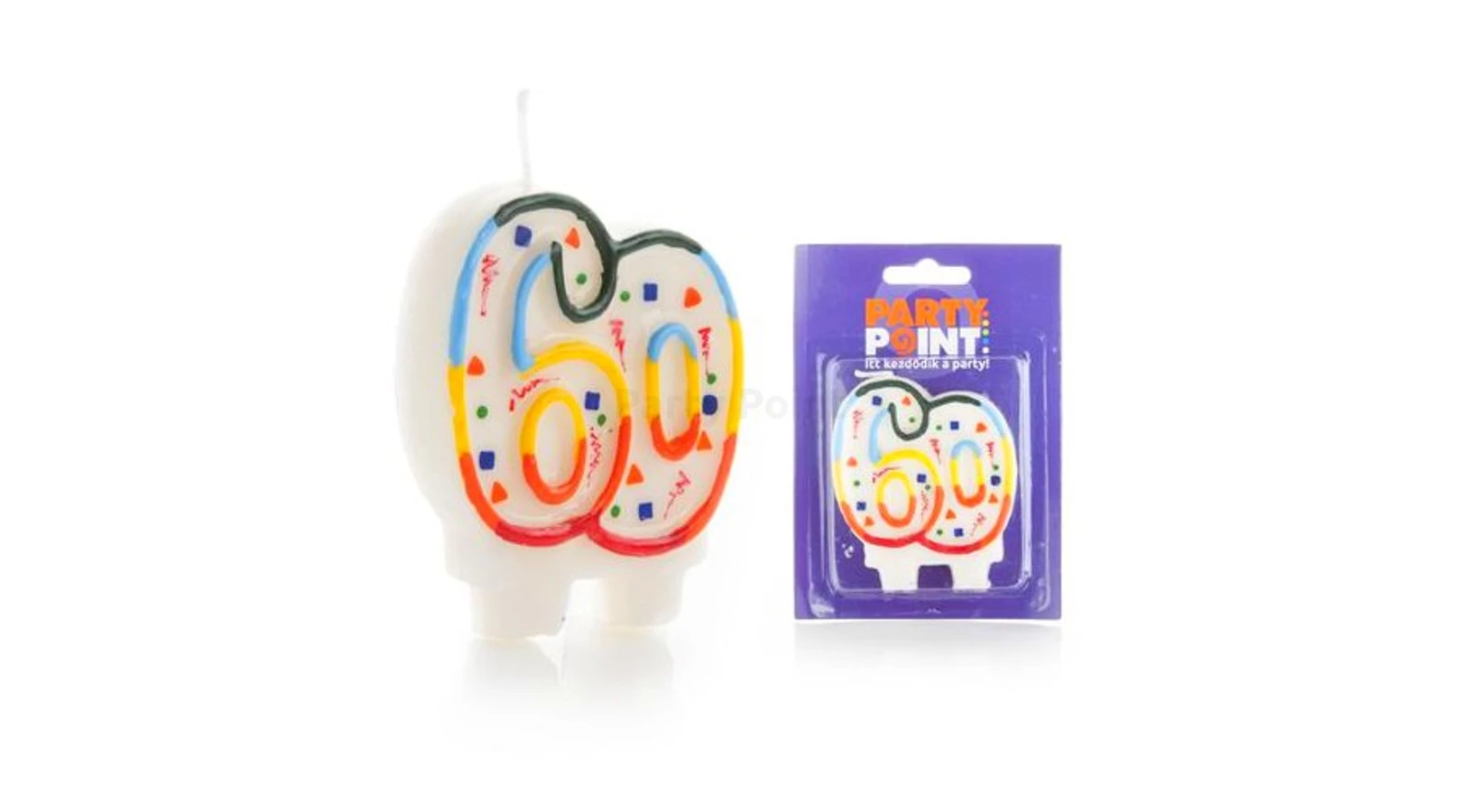 Elég csak egy pillantást vetni a születésnapi tortára és a vendégek máris tudják hány éves az ünnepelt! Ez a szép, színes tortagyertya jól mutat csokitortán, eper tortán, marcipán tortán egyaránt! 60. születésnapra ajánljuk.