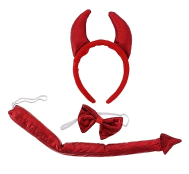 Szilveszterre, farsangra, beöltözős bulikhoz ajánljuk ezt a piros színű, három részes ördög szettet.  A szett tartalmaz egy fejpántot, egy csokornyakkendőt és egy farkincát