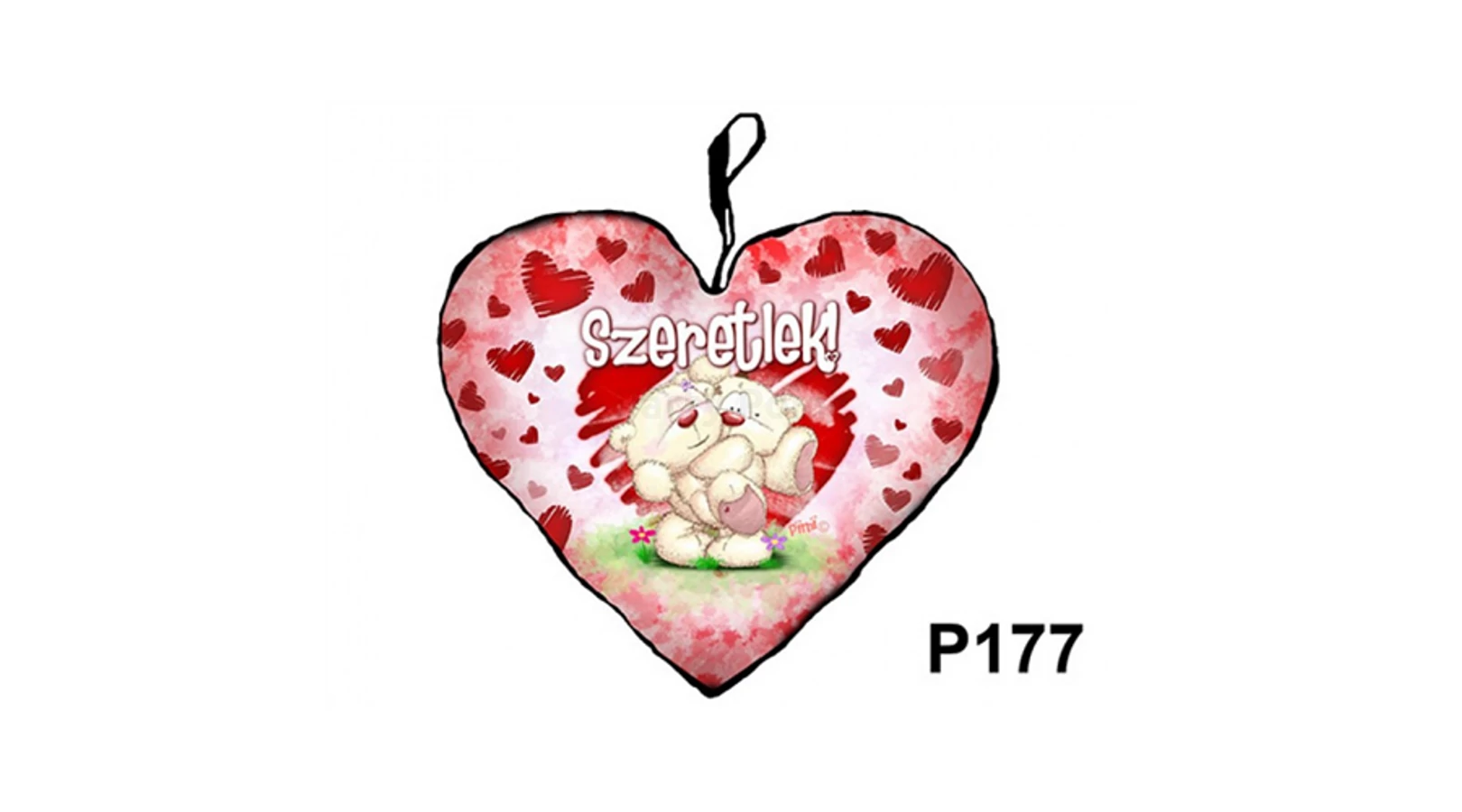 Szeretlek! szív alakú párna maci ölben 21 x 25 cm