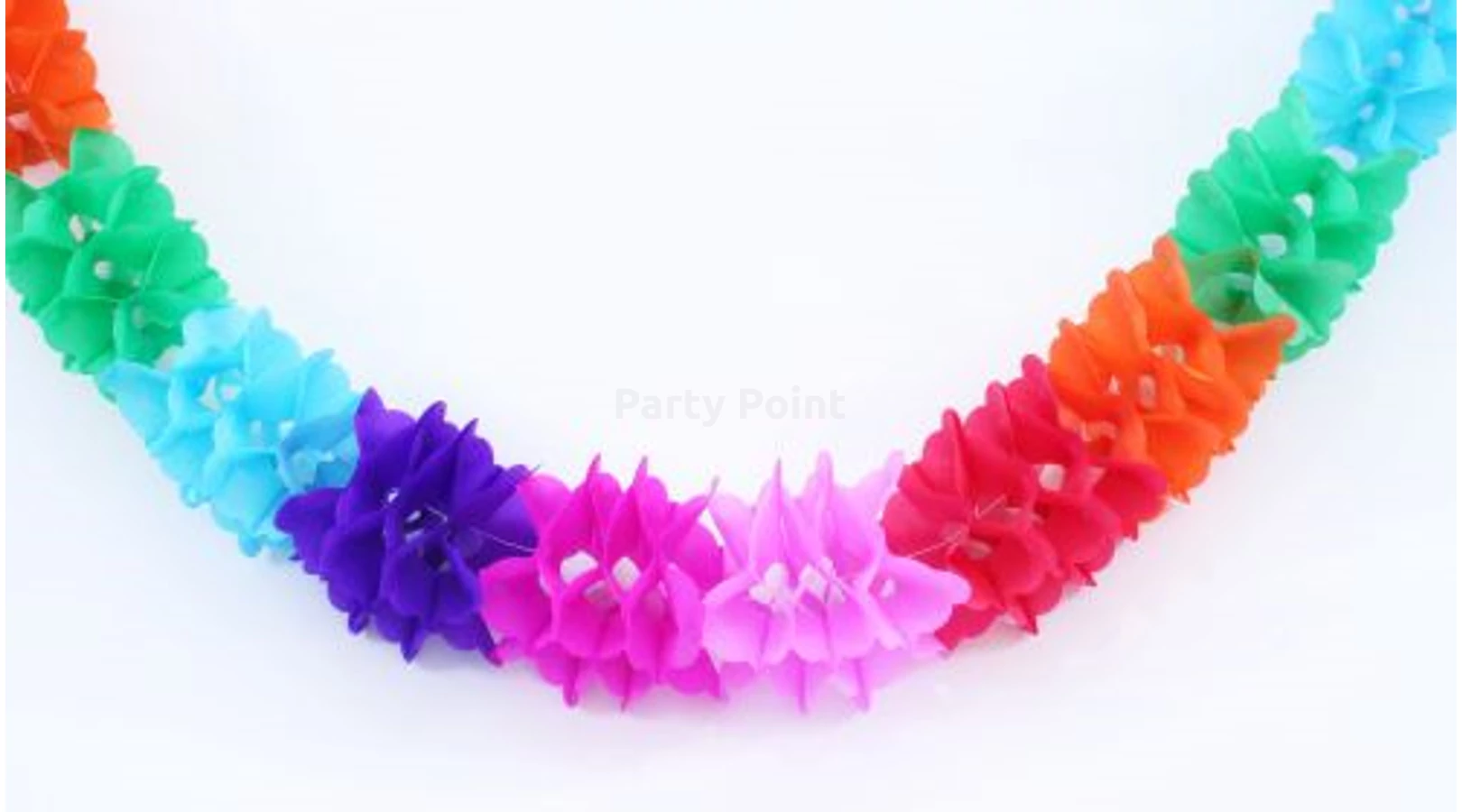 Farsangra, szilveszterre, szülinapra egyaránt színes dekorációs kiegészítő lehet ez a papír girland, amit kiegészíthetsz hozzá illő lampionokkal, feliratokkal is! Hossza: 400x12x12 cm