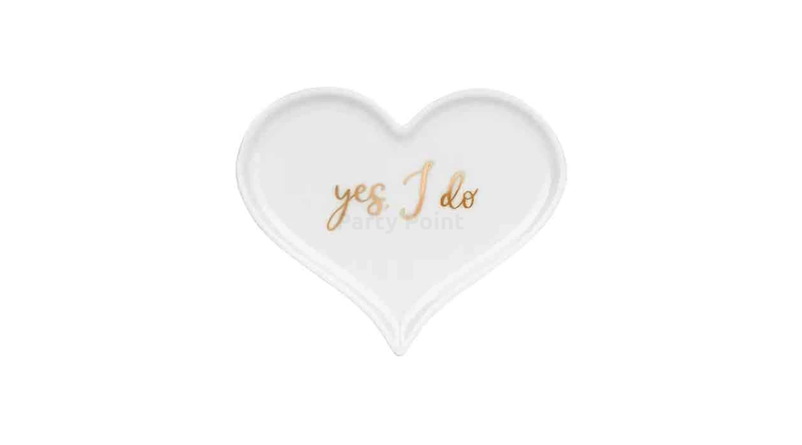 Szív alakú porcelán gyűrűtartó tányér - 13,3 cm x 10,8 cm