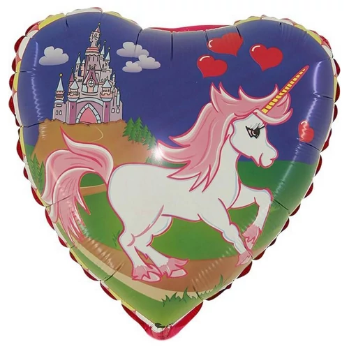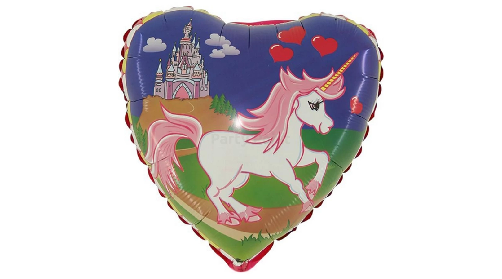 Csomagolatlan, 45 cm-es unikornis, szív alakú fólia lufi.