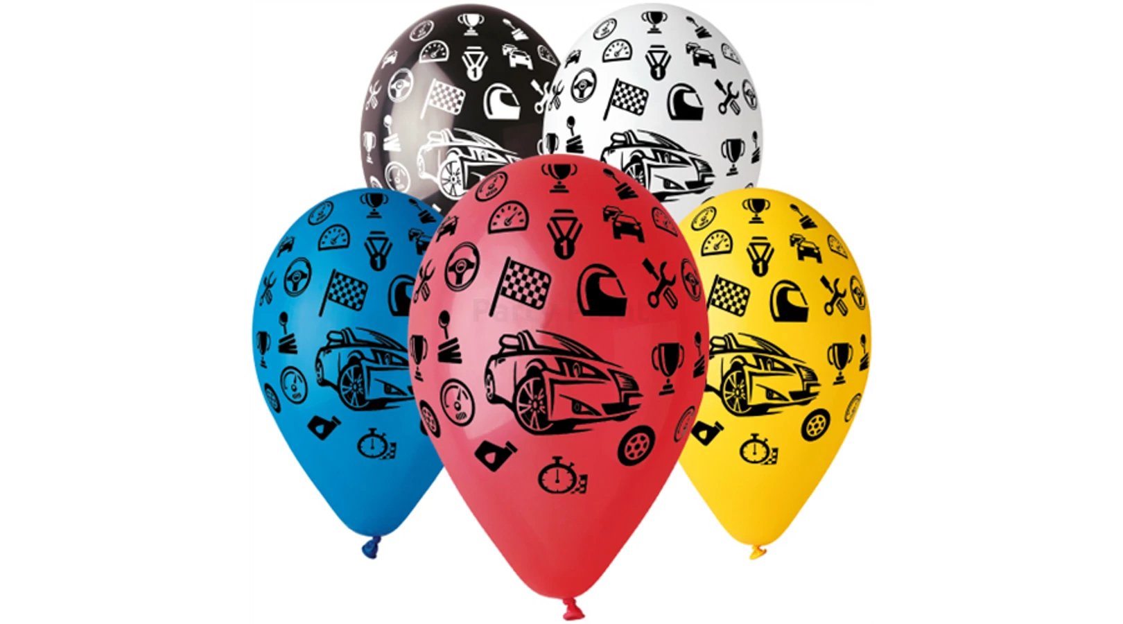 30 cm-es autós printelt gumi léggömb, 10db/cs. Ezzel a vidám, színes, autó mintás lufival feldobhatod a léggömbdekorációt a születésnapi partyn, farsangon, vagy kerti partyn. Kiegészítésként válassz mellé egyszínű, vagy akár más nyomott mintás léggömböt. Héliummal és levegővel is tölthető.