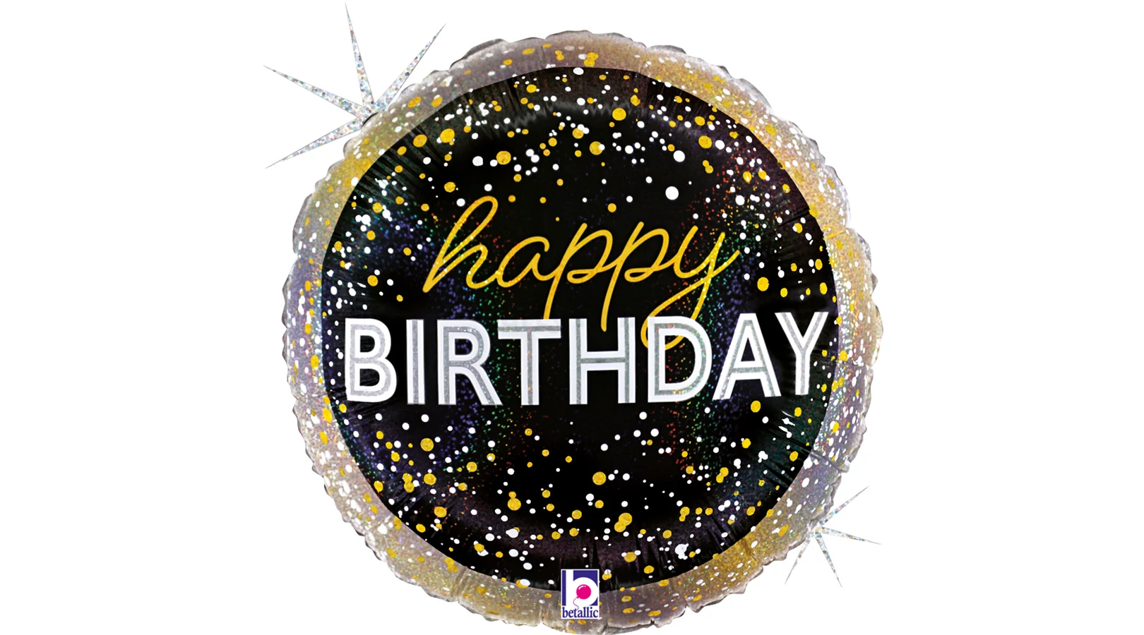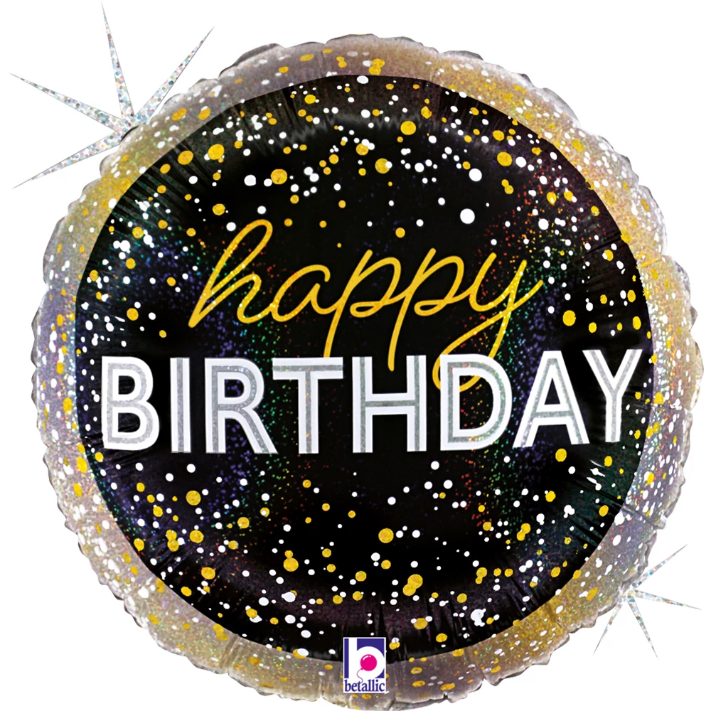 45 cm-es Happy Birthday elegáns pöttyös fólia lufi
