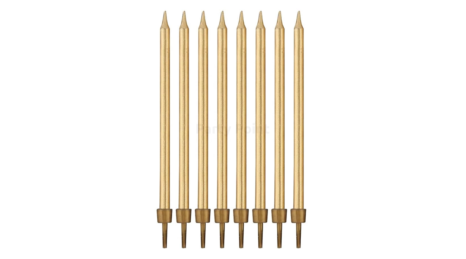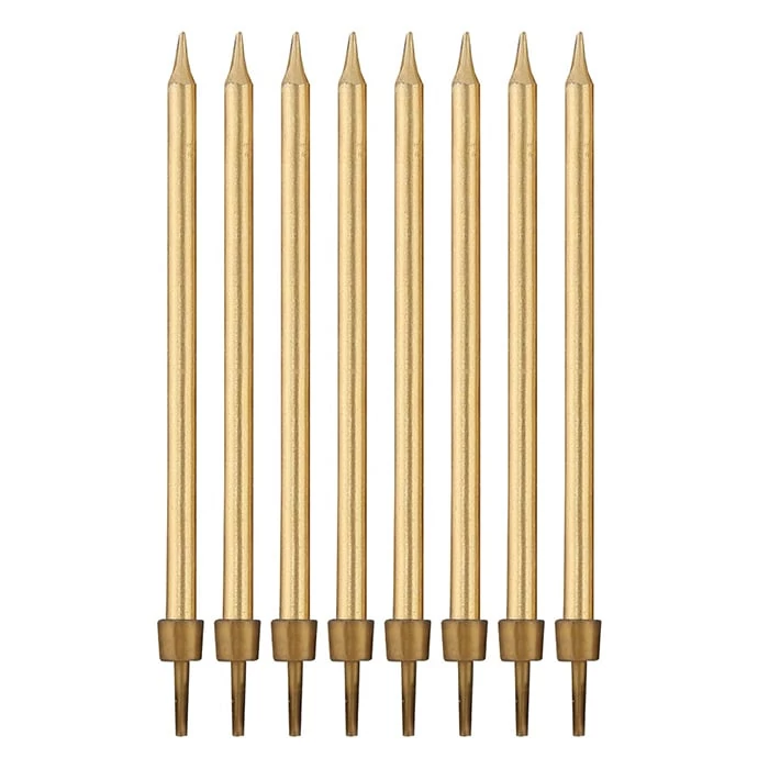 Arany gyertya arany - 8 db gyertya + 8 db tartó, 10 cm