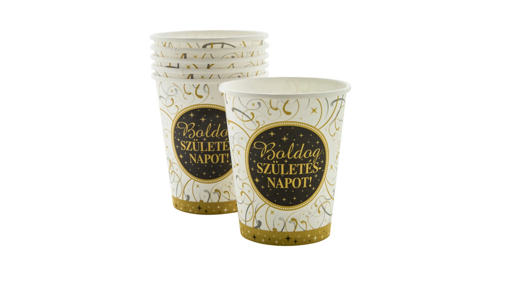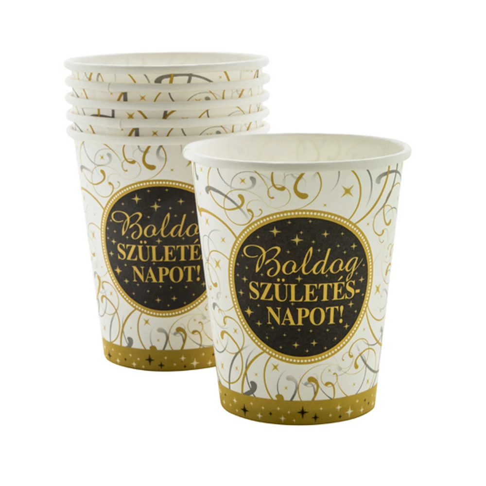 Elegáns Boldog Születésnapot feliratos pohár - 250 ml, 6 db / csomag