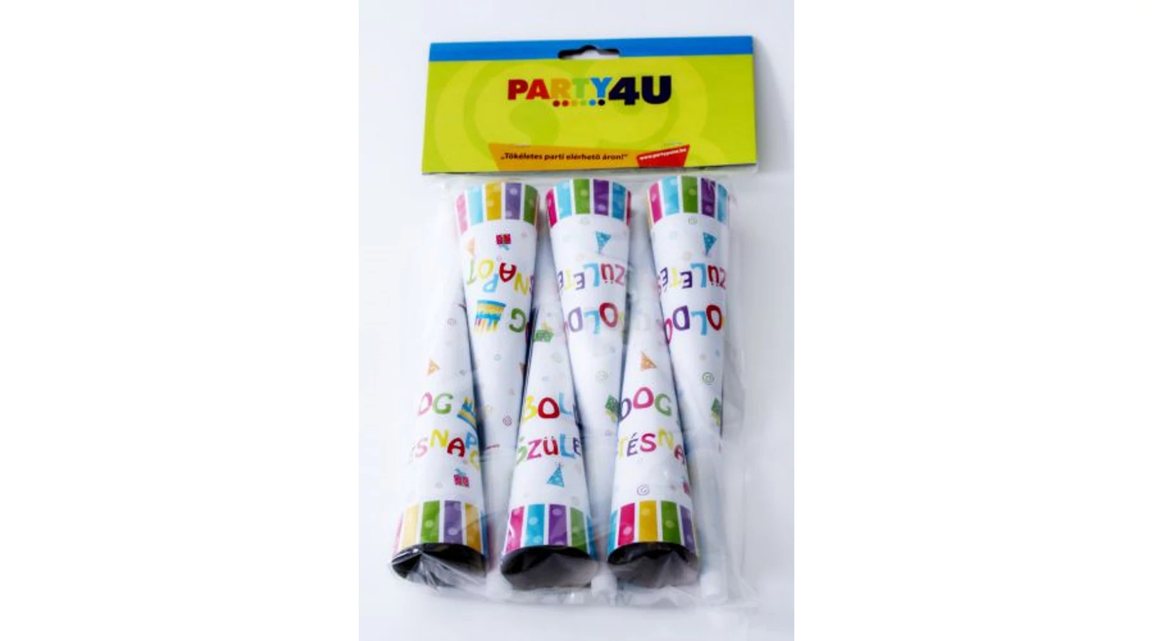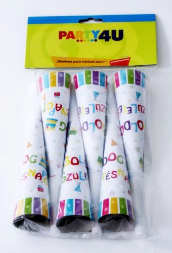 Gyerekeknek, felnőtteknek egyaránt ajánljuk ezt a Boldog születésnapot feliratos trombitát, ami kiegészíthető a hozzá illő csákóval és tányér szettel is! Egy csomag tartalma: 6 db trombita.