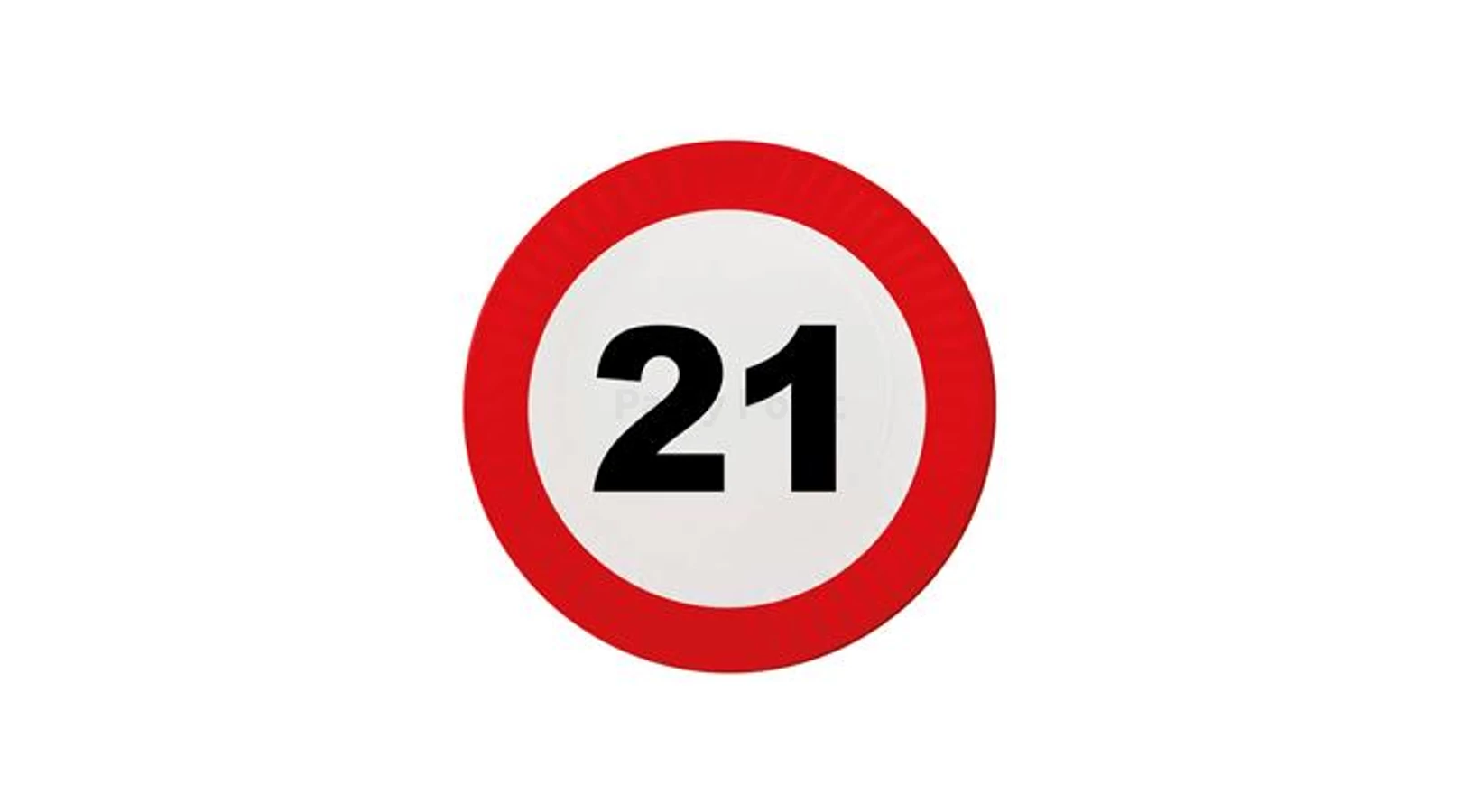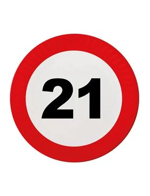 Behajtani tilos tányér 21. születésnapra - 23 cm, 8 db / csomag