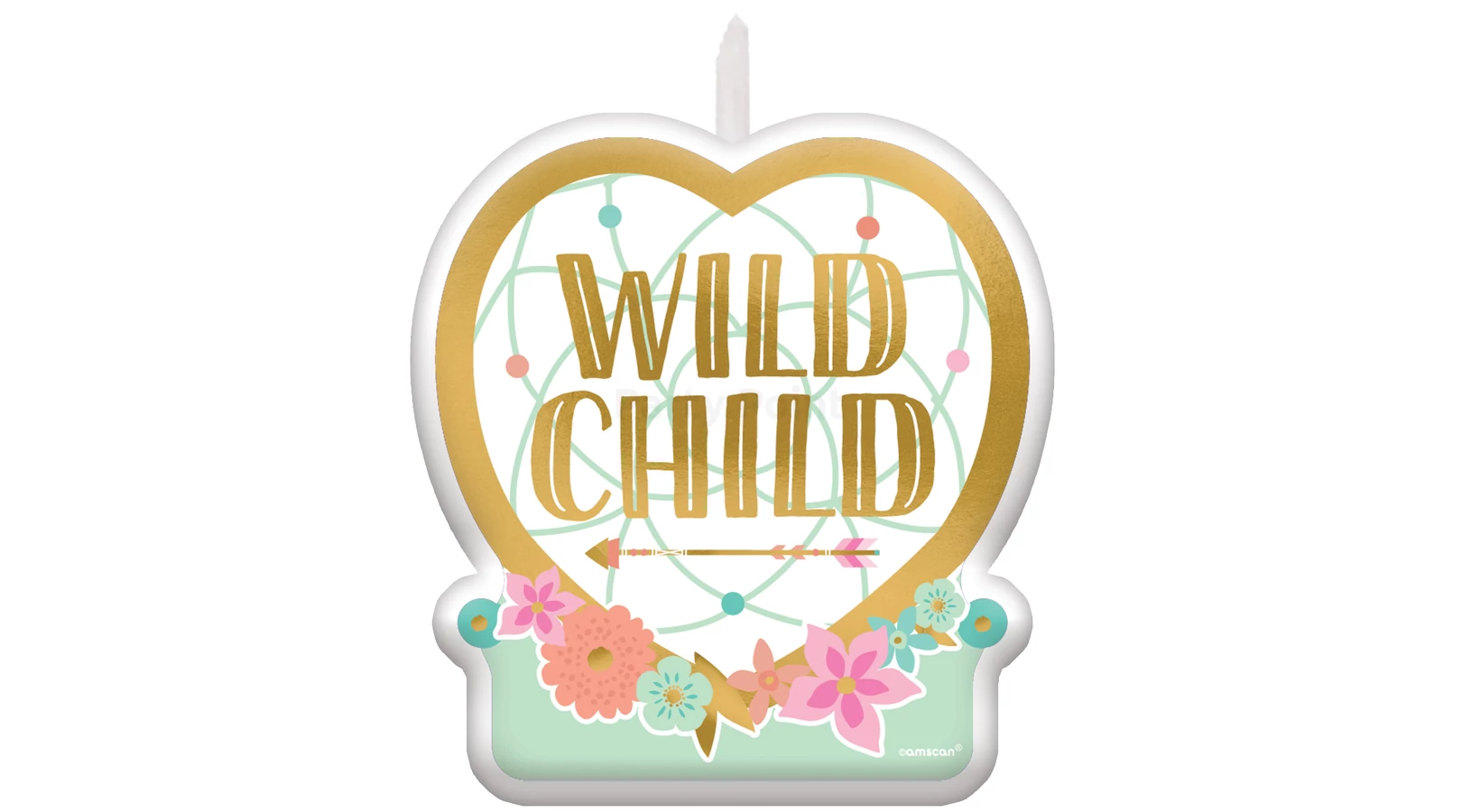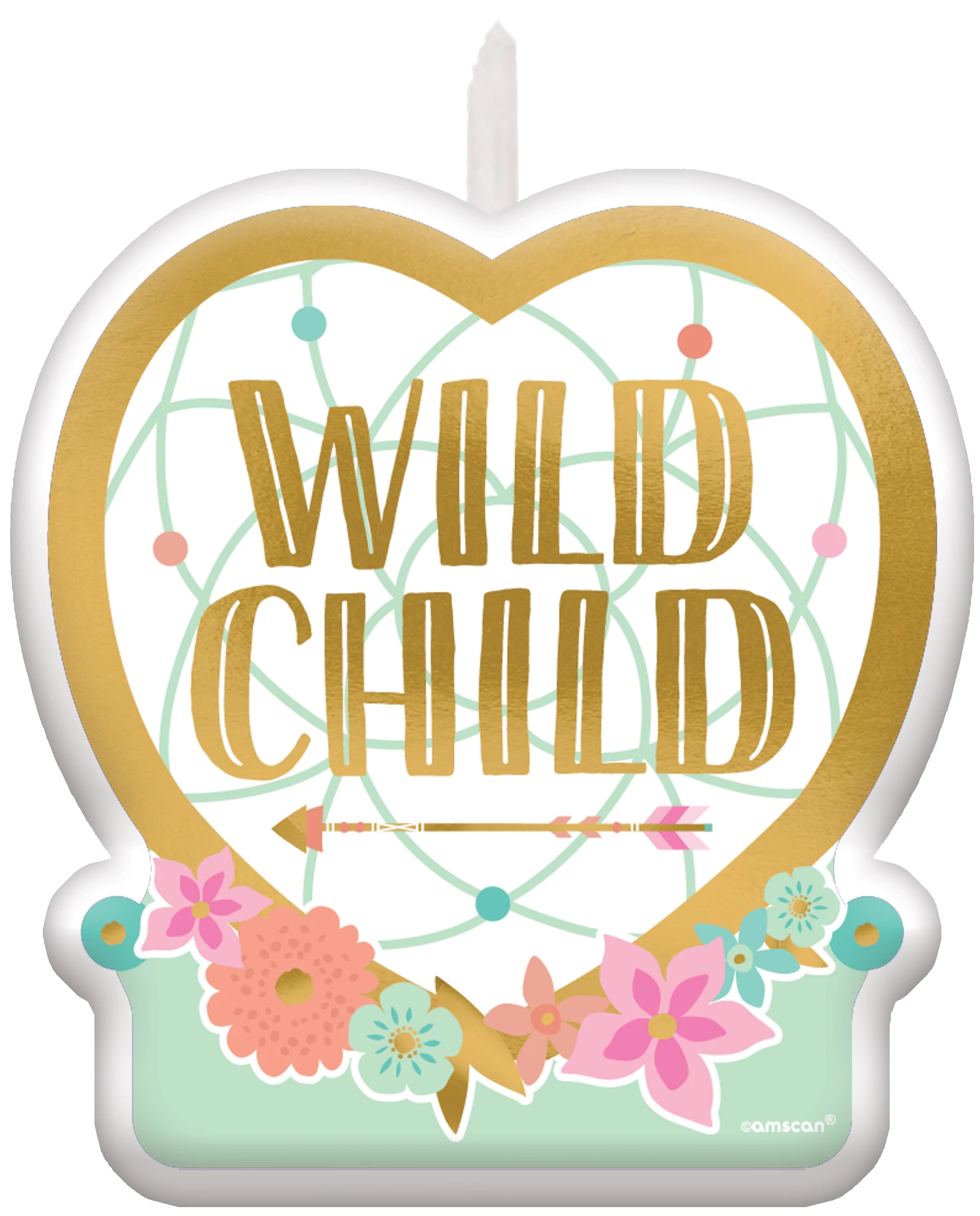 Boho Birthday Girl - Happy Birthday virágos-arany gyertya - 6 cm