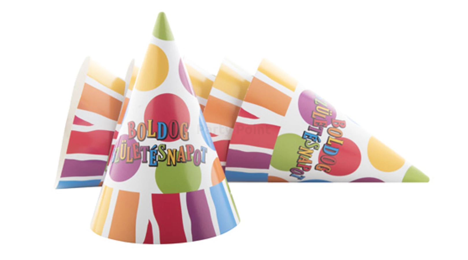 Csíkos-pöttyös Boldog Születésnapot csákó, 6 db