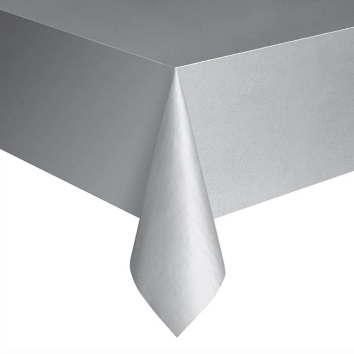 Ezüst műanyag asztalterítő - 137 cm x 274 cm