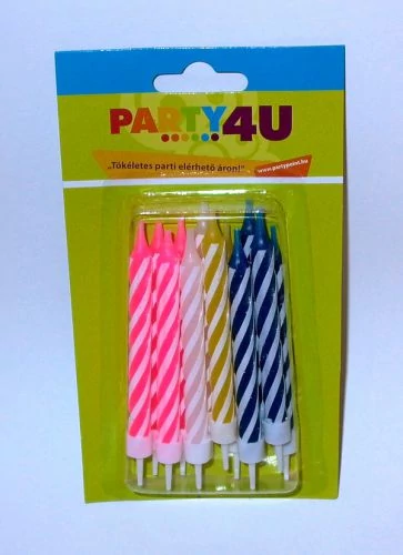 Szeretnél egy vidám szülinapi tortadekorációt? Díszítsd születésnapi tortádat ezekkel a színes jumbo gyertyákkal, meglátod mindenkinek tetszeni fog! Tálald a tortát színes party tányérokon. Egy csomag tartalma: 12 db gyertya.