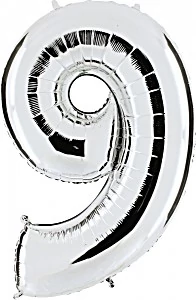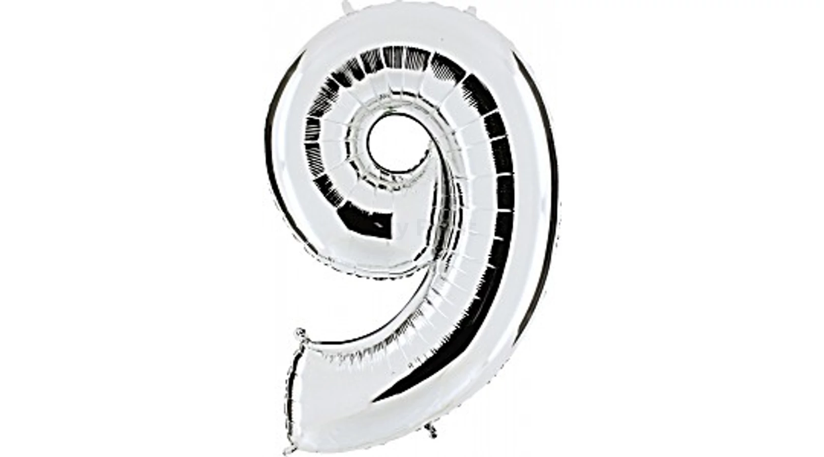 JuniorShape - ezüst színű 9-es szám fólia lufi
