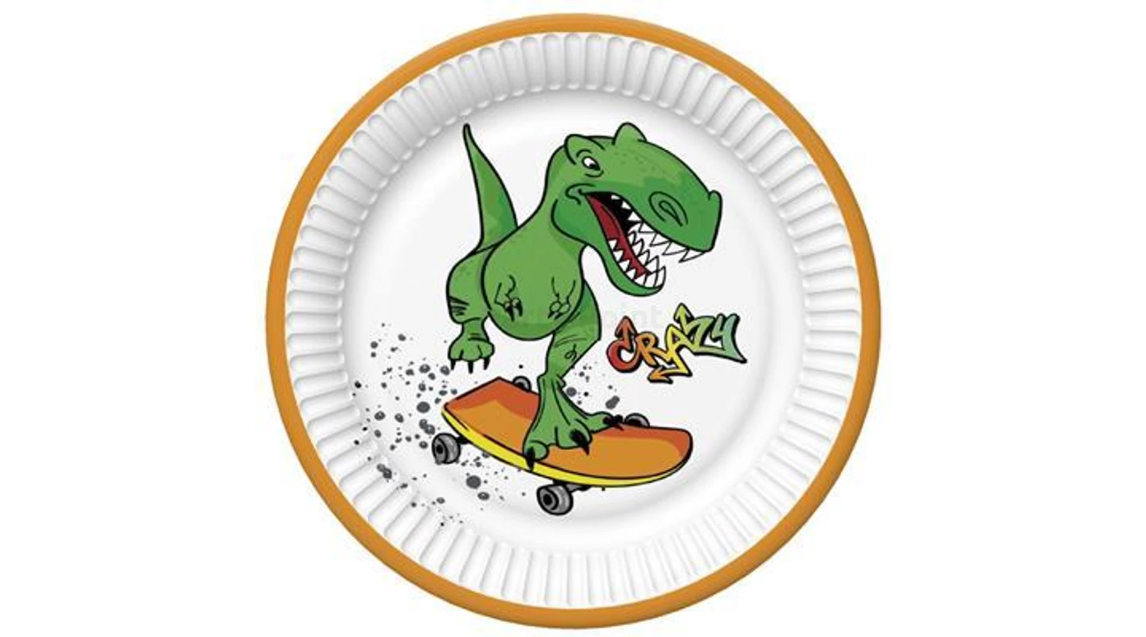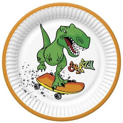 Gördeszkás dínó tányér - 23 cm-es, 8 db / csomag