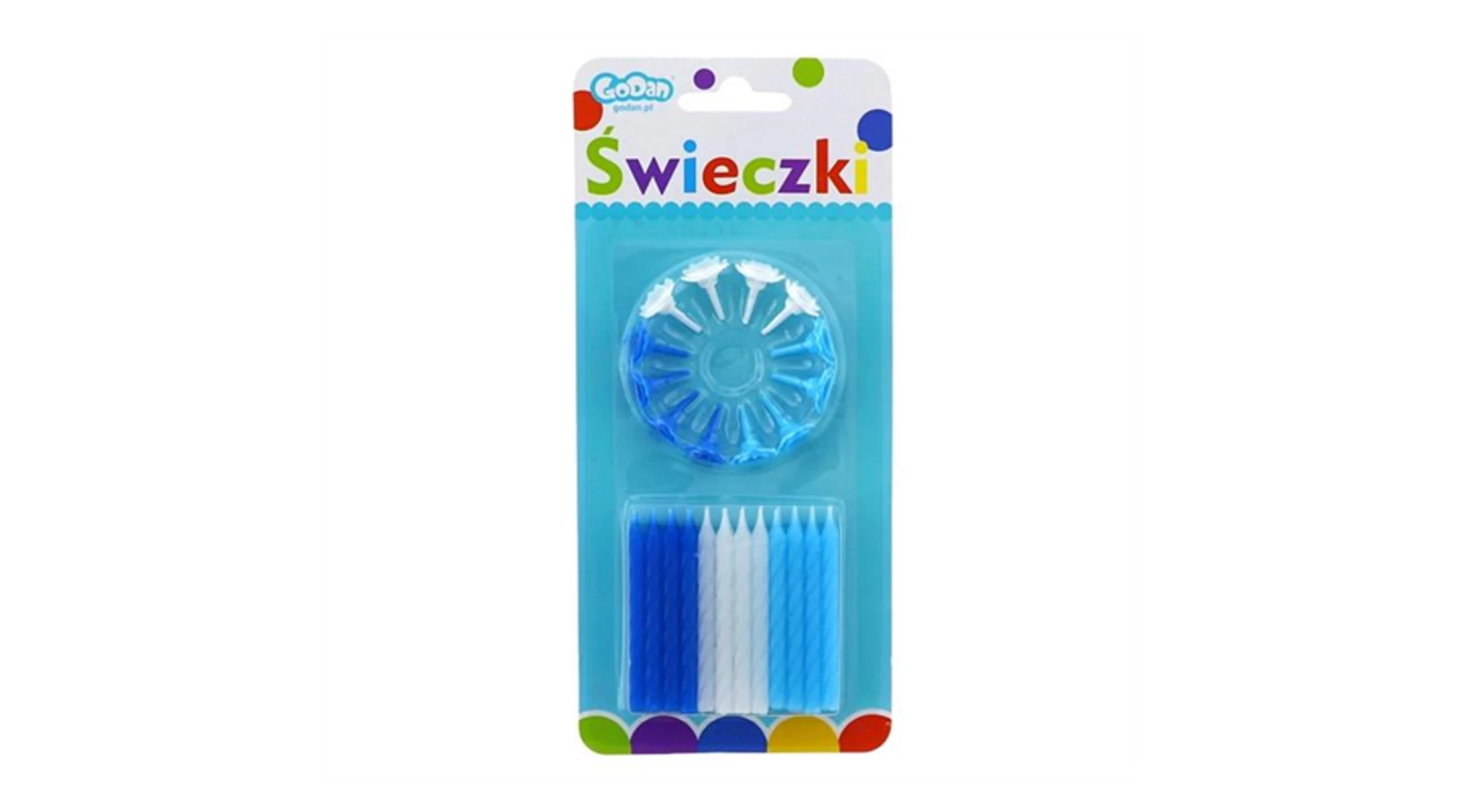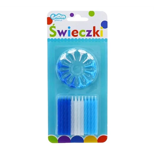 6 cm-es gyertya tartóval, kék-fehér színben. 12 db/csomag.