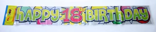 Happy 18. Birthday fólia felirat 3,6 m. Egyetlen igazán nagyszerű születésnapi buliból se maradhat ki a vidám, ünnepi dekoráció. Válaszd ezt a színes, számozott feliratot a party helyszín feldíszítéséhez! Kiegészíthető hozzá illő gumi lufikkal, fólia léggömbökkel és szülinapi zászlókkal is.