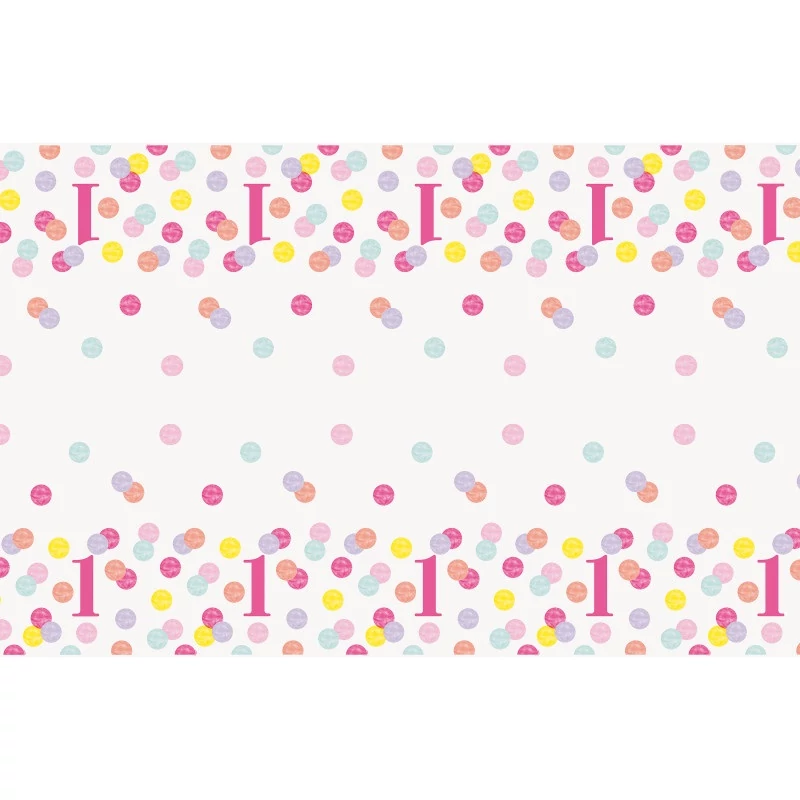 Pink pöttyös 1. szülinap műanyag asztalterítő - 213 cm x 137 cm