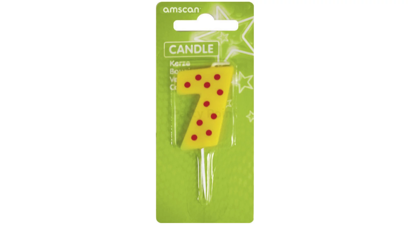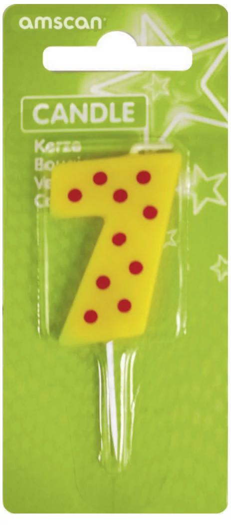 Szám gyertya, csíkos-pöttyös 7-es - 7,6 cm