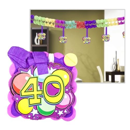 Itt az idő egy fergeteges buli keretében megünnepelni a 40. születésnapodat. A parti helyszínének dekorálásához ajánljuk ezt a számos girlandot, amelyet kiegészíthetsz fólia és gumi léggömbbökkel, lampionokal is. A girland 4 méter hosszú és 12 db függő számot tartalmaz.