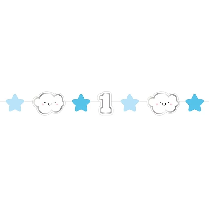 Világoskék mini papír girland 1. szülinapra - 120 cm