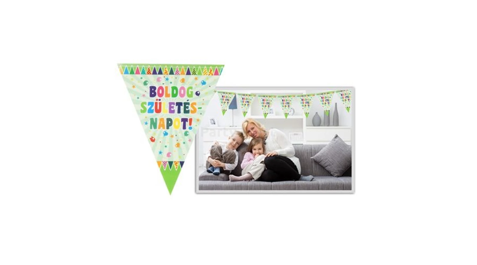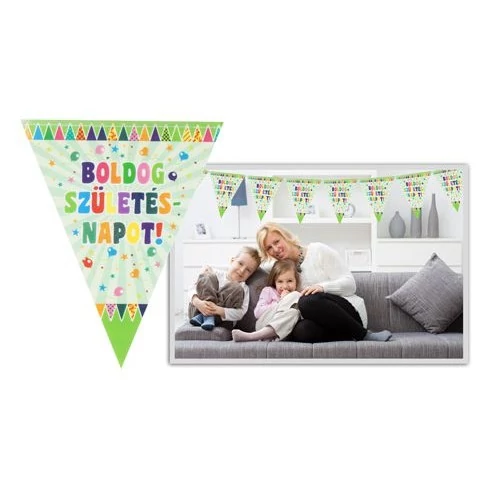 Szülinapi buli helyszínének dekorálásához ajánljuk ezt a vidám színes, Boldog Születésnapot girlandot. Kiegészítheted lufikkal, lampionokkal, feliratokkal. És hogy az asztal se maradjon üresen, vásárolj mellé dizájnban hozzá illő tányért, poharat, szalvétát.