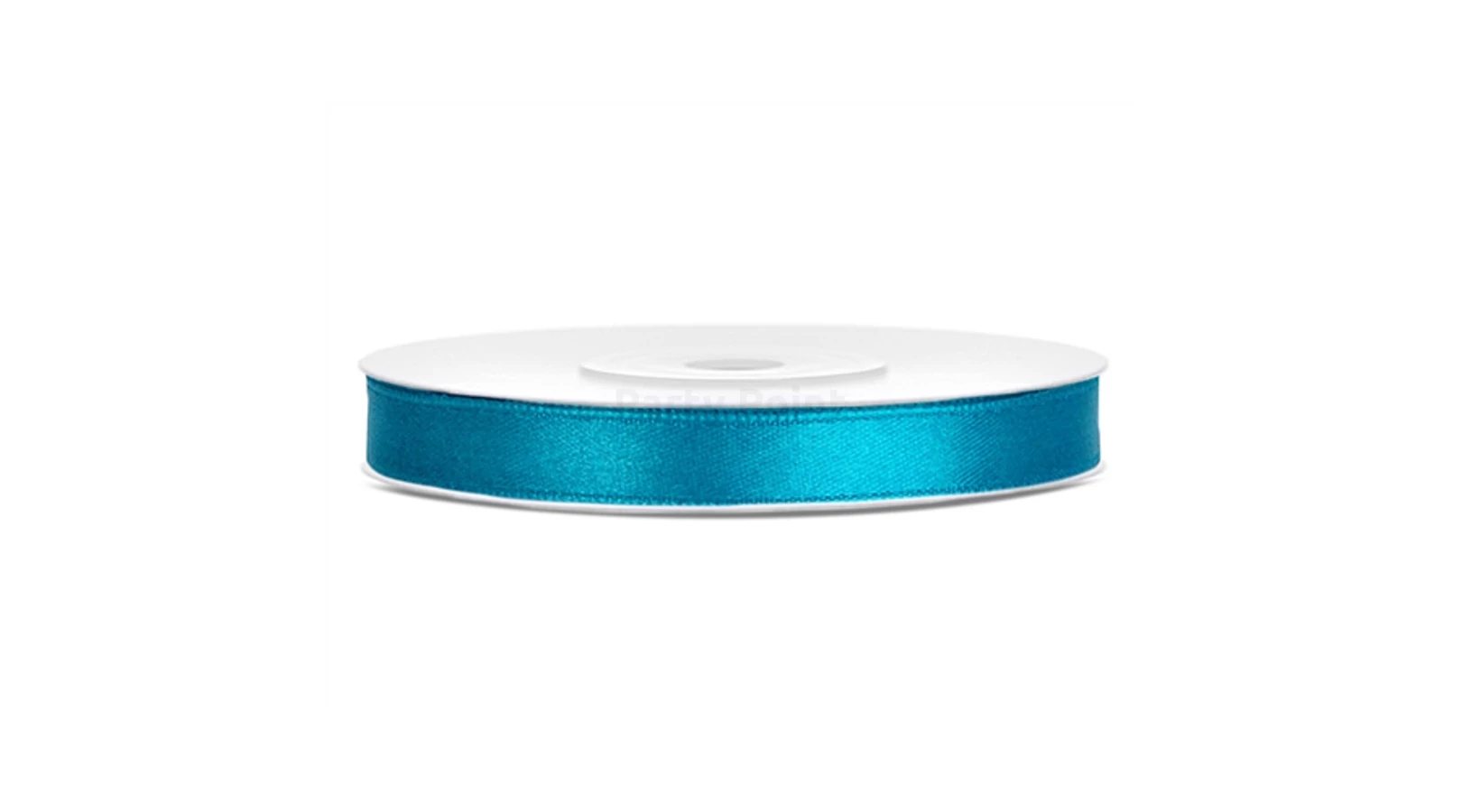 Türkiz szatén szalag 6 mm x 25 m. Ez a vidáman elegáns türkiz szatén szalag remek kiegészítő esküvői ajándékokhoz, virágcsokrokhoz, alkalmi meglepetésekhez. Próbálj ki különböző színkombinációkat az egyedibb díszítésért!