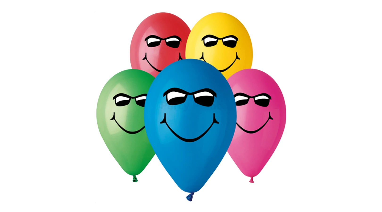 30 cm-es színes szemüveges smiley printelt léggömb, 100 db.