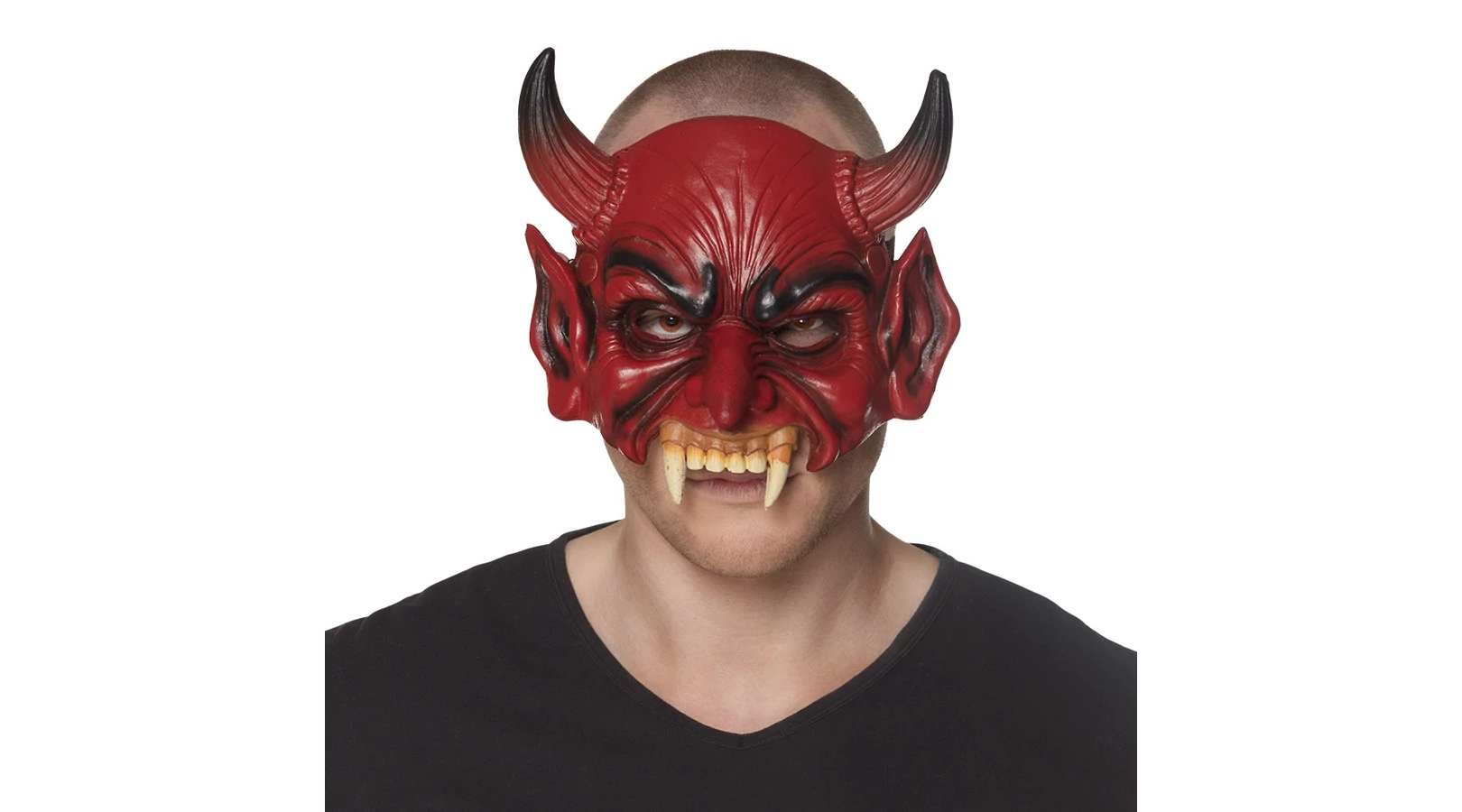 Ördög szarvakkal félmaszk. Lehet farsang vagy Halloween, ezzel a maszkkal garantált a siker egy beöltözős, jelmezes bulin. Kombináld jelmez kiegészítőinkkel.