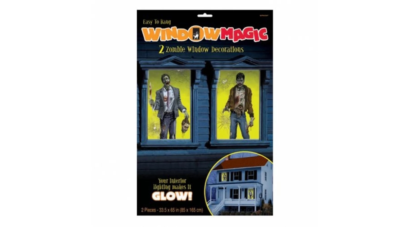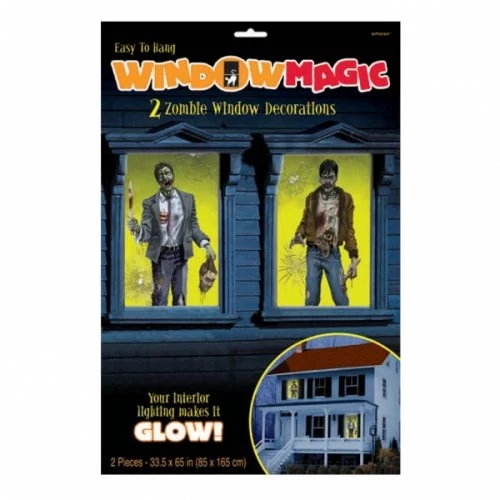 Sötétben világító Zombie ablak matrica 85 x 165 cm 2 db/cs. Egy igazán izgalmas Halloween partyra, nélkülözhetetlen a megfelelő díszítés. Dobd fel a bulit, és használd ezt a kísérteties, sötétben világító, zombis ablakmatricát. Kiegészíthető különböző Halloween-i függőkkel, girlandokkal és léggömbökkel is.