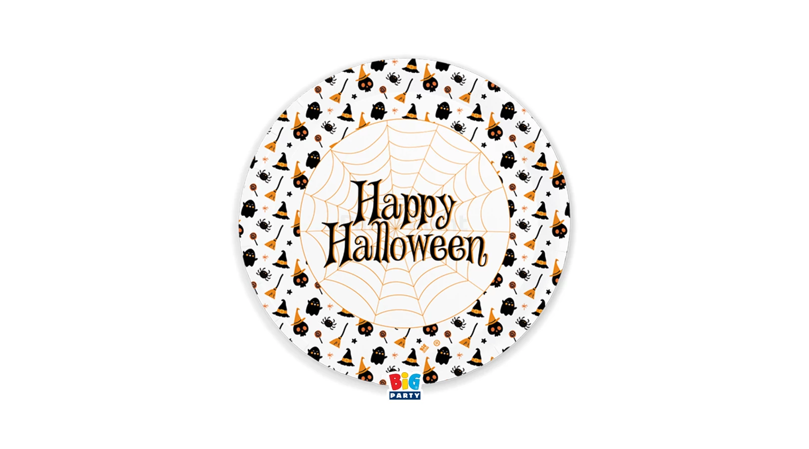 Tányér Halloweenre - tök, szellem, seprű - 20,5 cm, 6 db / csomag