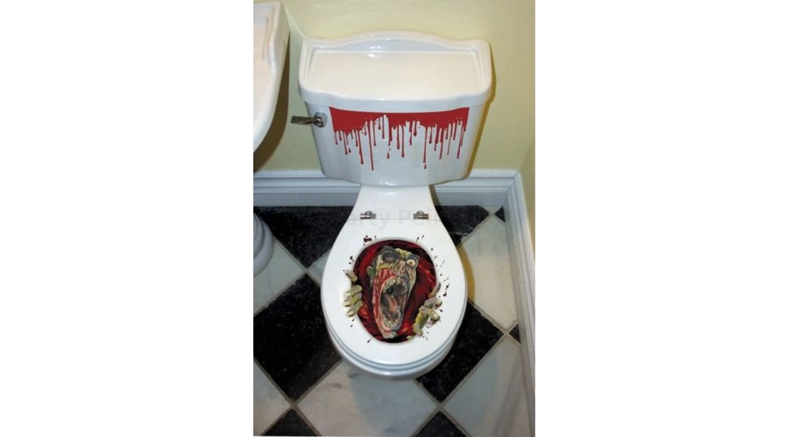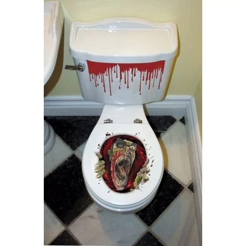 Ha Halloween bulit tartasz, akkor a dekoráláskor ne hagyd ki a mellékhelyiséget, mert erre a toalett matricára senki sem fog számítani a WC ülőke tetején. Borzasztóan jó :)