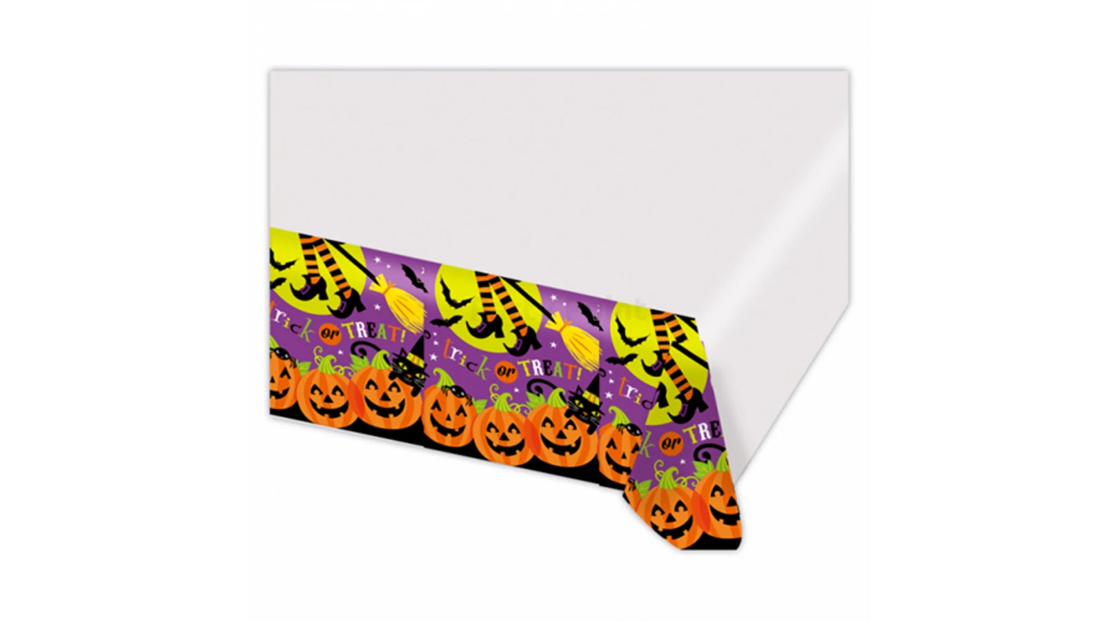 Trick or Treat műanyag terítő 1,37m x 2,6m. A halloweeni party fontos hozzávalója a teríték. Válaszd ezt a terítőt és garantált a jó hangulat!