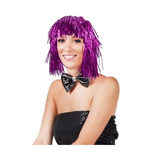 Vállig érő pink fólia paróka