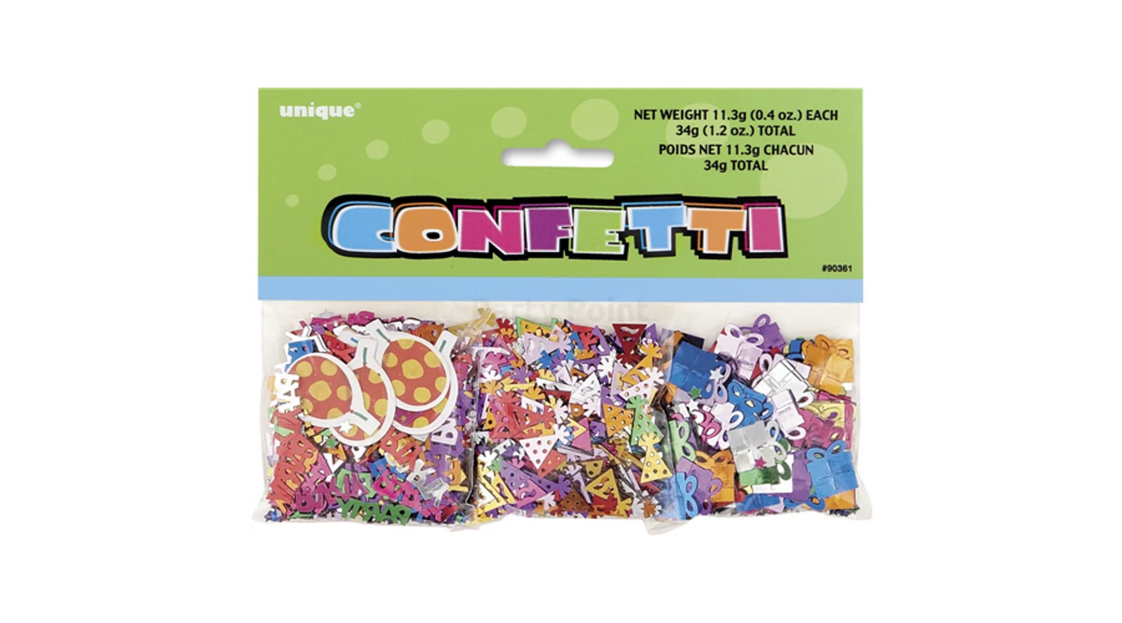 A szülinapi parti asztalt dekoráld ezzel a színes konfettivel. A termék három csomagból áll, minden csomagban más-más mintájú, színű és formájú konfettit találsz. A csomag 34 g-os