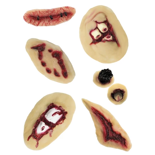 Vérző mű sebek. Lehet farsang vagy Halloween, ezzel a mműsebbel garantált a siker egy beöltözős, jelmezes bulin. Kombináld jelmez kiegészítőinkkel.
