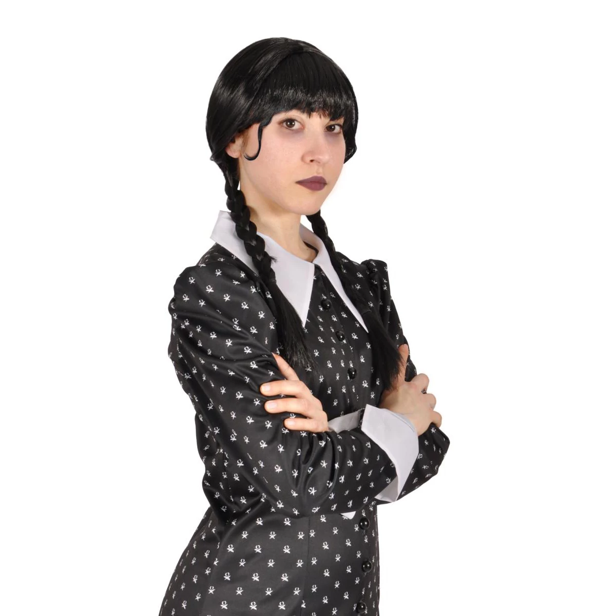 Wednesday Nevermore paróka. Elkezdődött a rémségek éjszakája! Éjfélt ütött az óra? Egy szuper halloweeni Addams Family partira vagy hivatalos? Akkor ezt a Wednesday parókát Neked találták ki!